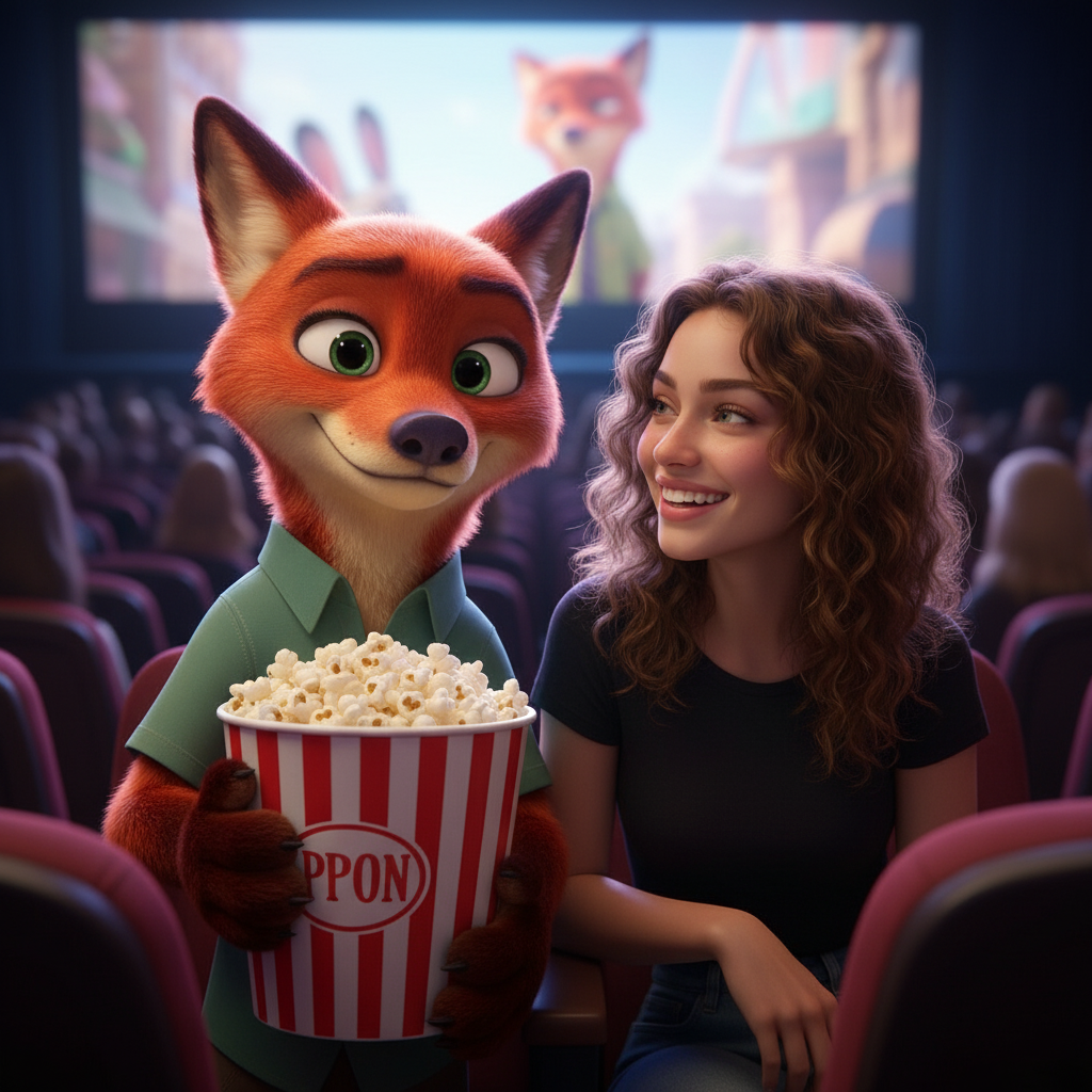 ![[Ref Image 1: Template, Ref Image 2: User]. TASK: Identity Swap. ACTION: Replace the human's face with the user's face. KEEP Nick Wilde (the fox) EXACTLY THE SAME. EXPRESSION LOCK: Nick must have a charming, friendly smirk. Soft, wide eyes. NOT angry, NOT scary. He is a cute animated character. PRESERVE the popcorn and theater background. The user looks happy.](https://ghgslbbnwohwdtegrigv.supabase.co/storage/v1/object/public/gallery-public/generated/af1a2370-b852-48a1-a8bb-3c72e39cb621/1764792462091-19e9b2e5-c5b3-42a2-bfd8-ad29222f07d9.png)
